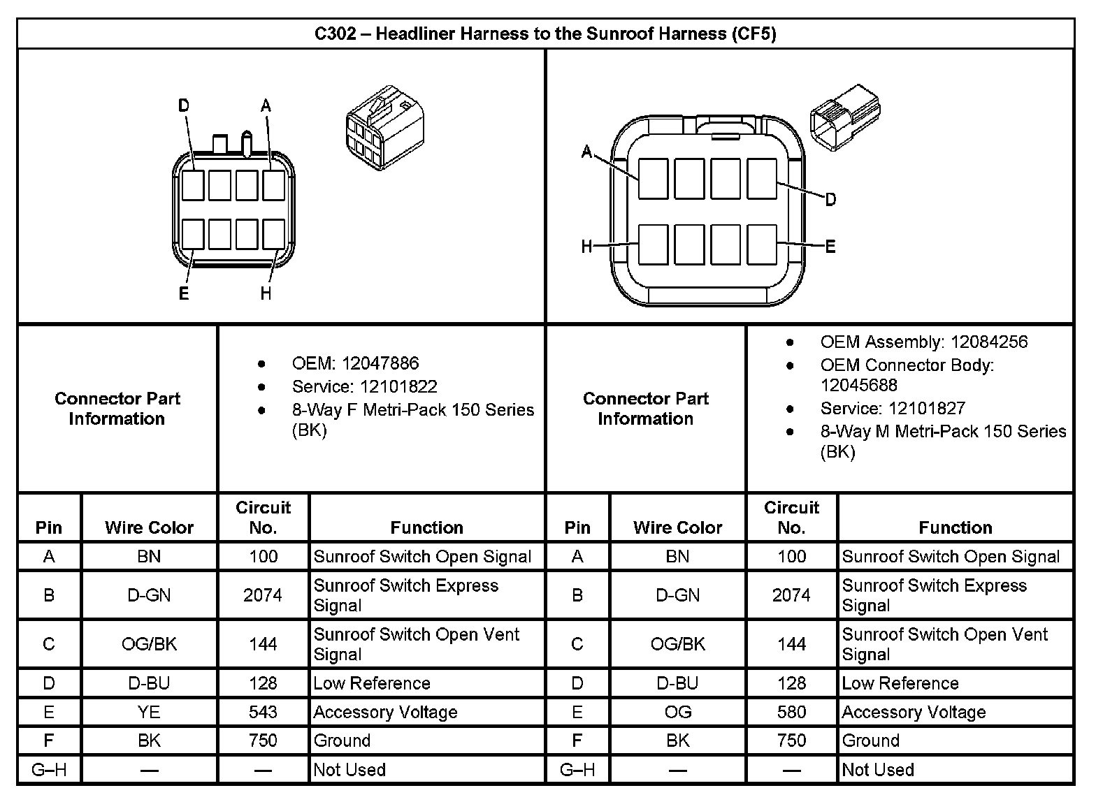 C302 - Headliner Harness To The Sunroof Harness (with RPO Code CF5):
