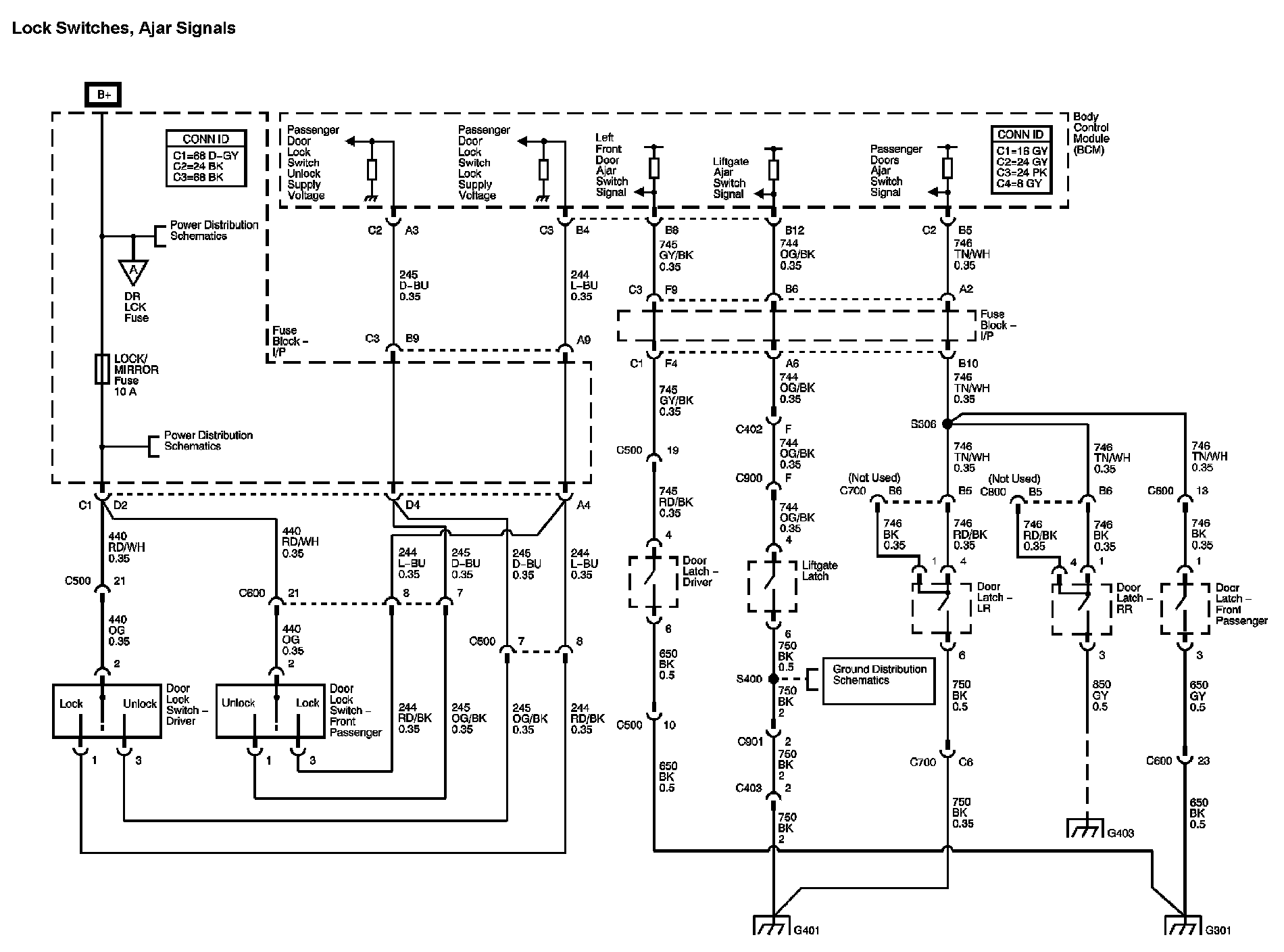 The locations for the Connectors, Grounds, Splices, and Grommets shown within these diagrams can be found via their numbers at Vehicle Locations.