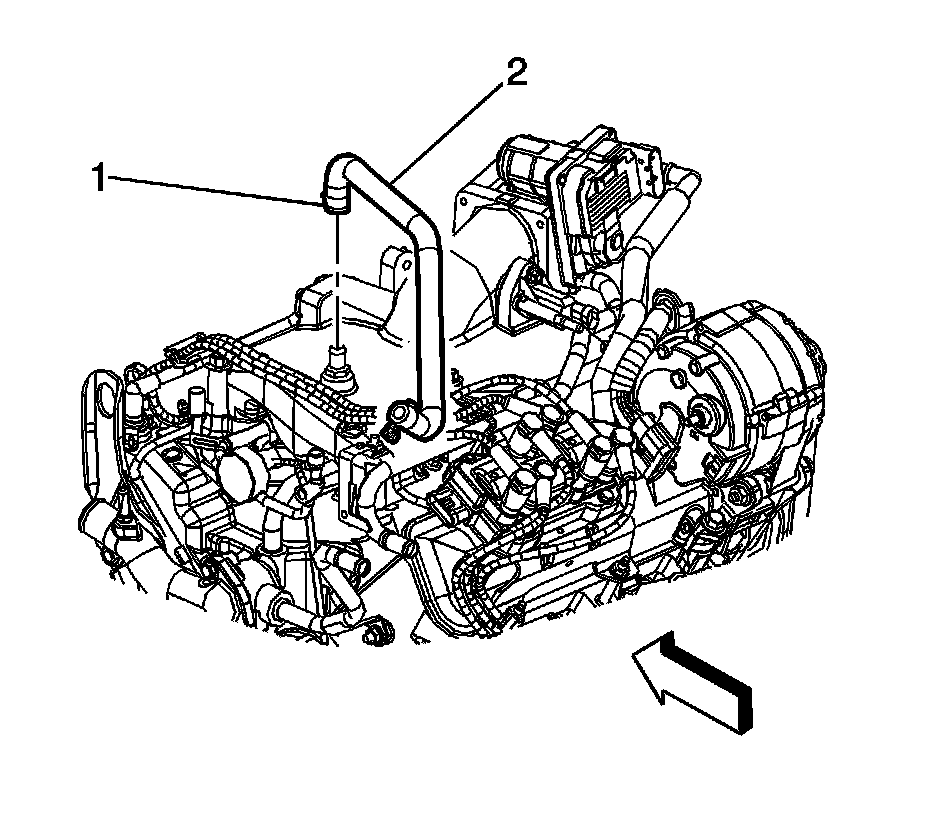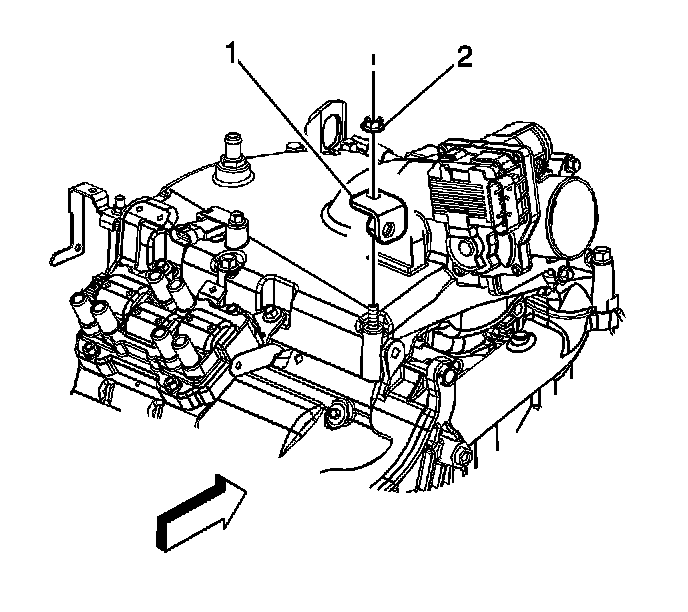 3. Disconnect the brake booster vacuum hose (2) from the intake manifold.