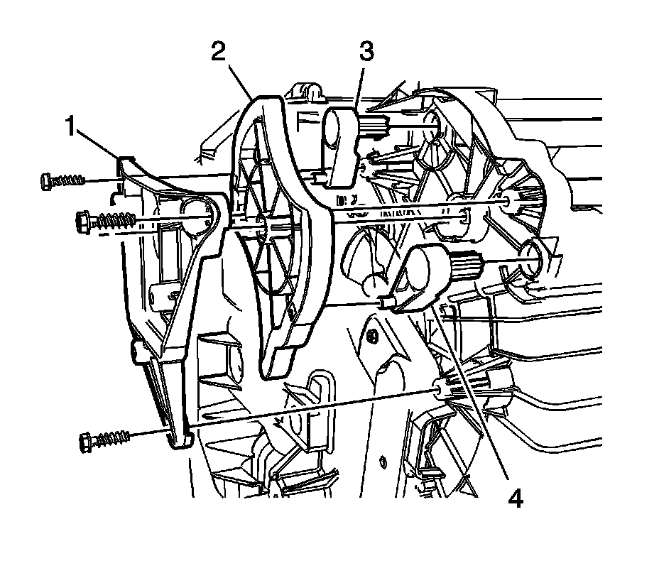 5. Align and install the mode cam (2) to the mode cam levers (3). Rotate the mode cam (2) to verify mode door operation.