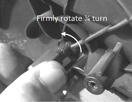 11. Carefully install the easy-out at the driver's side pivot point by slowly turning counter-clockwise until firmly engaged (approximately 1/4 turn).