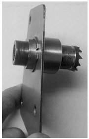 18. Rotate the hole saw clockwise without power tools (i.e. by hand with a ratchet). While rotating the hole saw, resistance can be felt as the case is being cut. Continue to rotate until saw socket disengages fully from the ratchet.