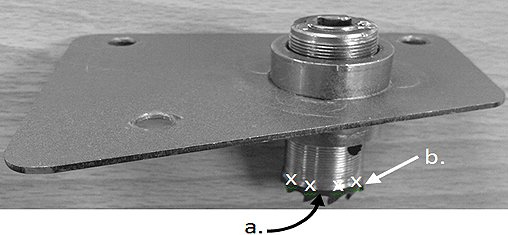 16. Using GM Vehicle Care Synthetic Lubricant with Teflon, generously grease - a.) inside of the toothed area of the precision hole saw, b.) outside of the toothed area of the precision hole saw as indicated in Figure 7. The lubricant will aid in cutting and serve to trap the shavings that result from drilling.