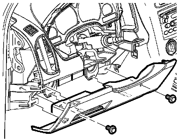 2. Remove the knee bolster. Refer to the illustration above and the Knee Bolster Replacement procedure in SI.