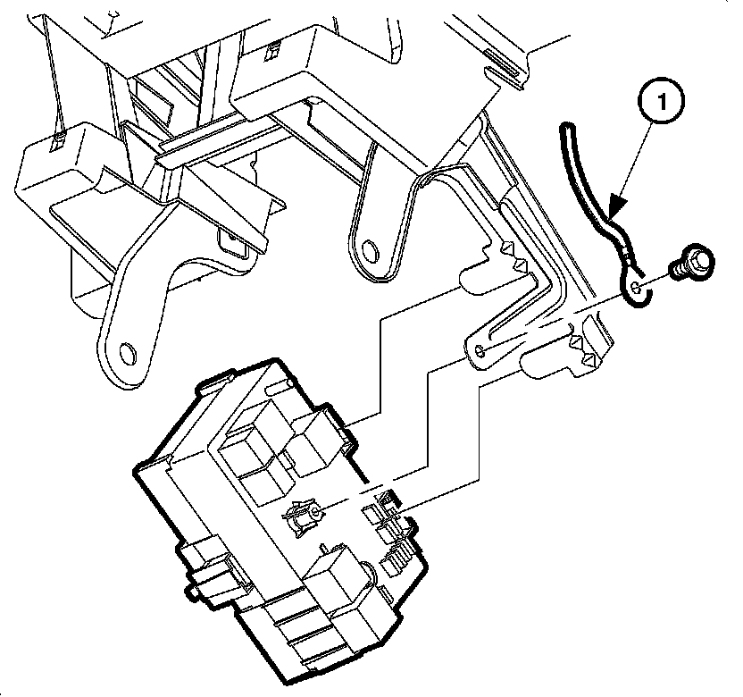1. Install the fuse block and attach the ground wire (1) and attach the bolt.