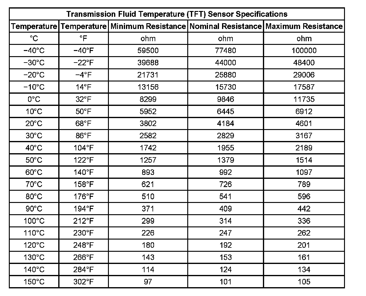 Transmission Fluid Temperature (TFT) Sensor Specifications: