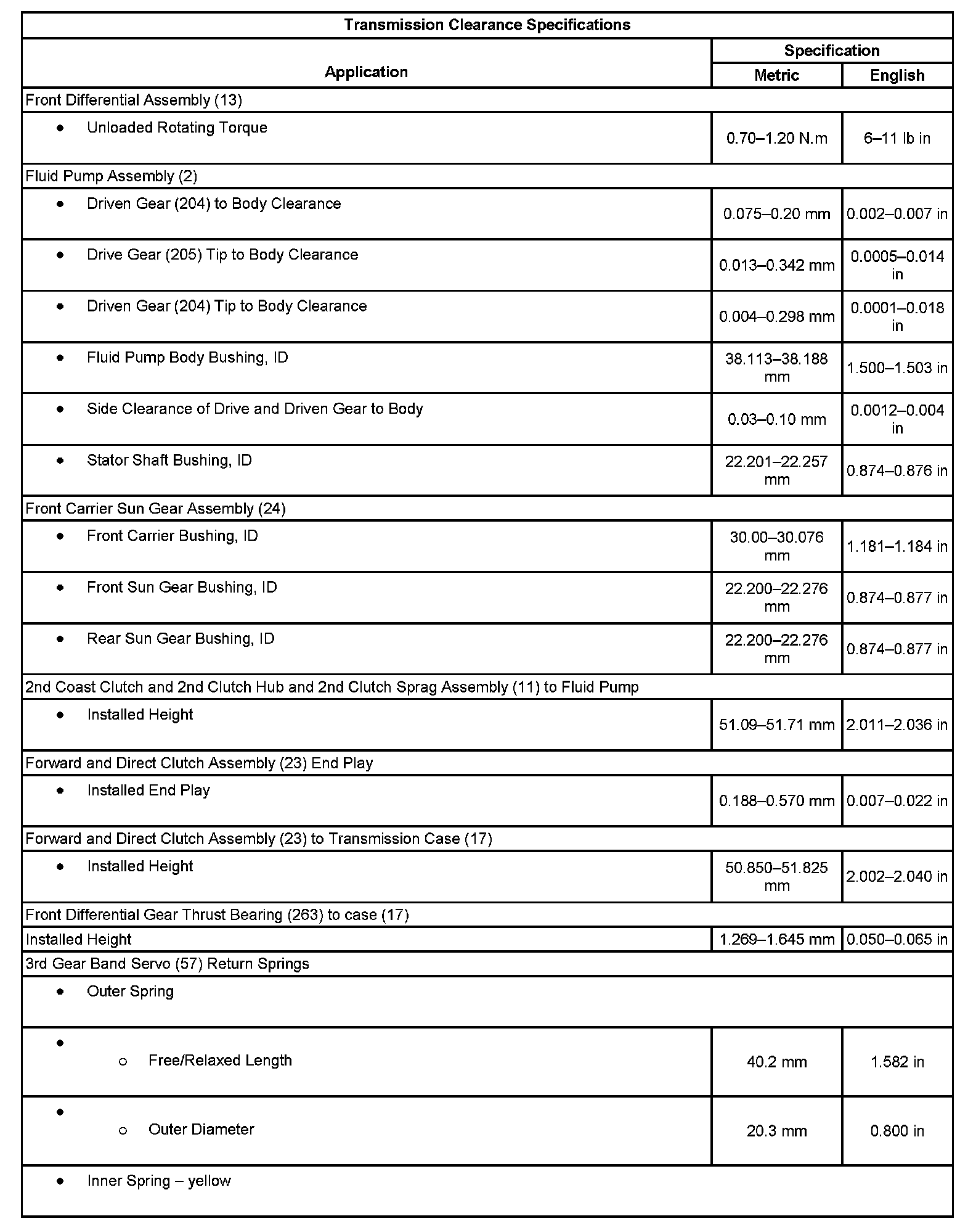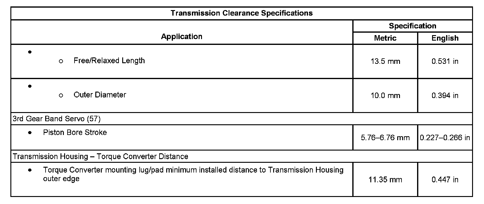 Transmission Clearance Specifications 1: