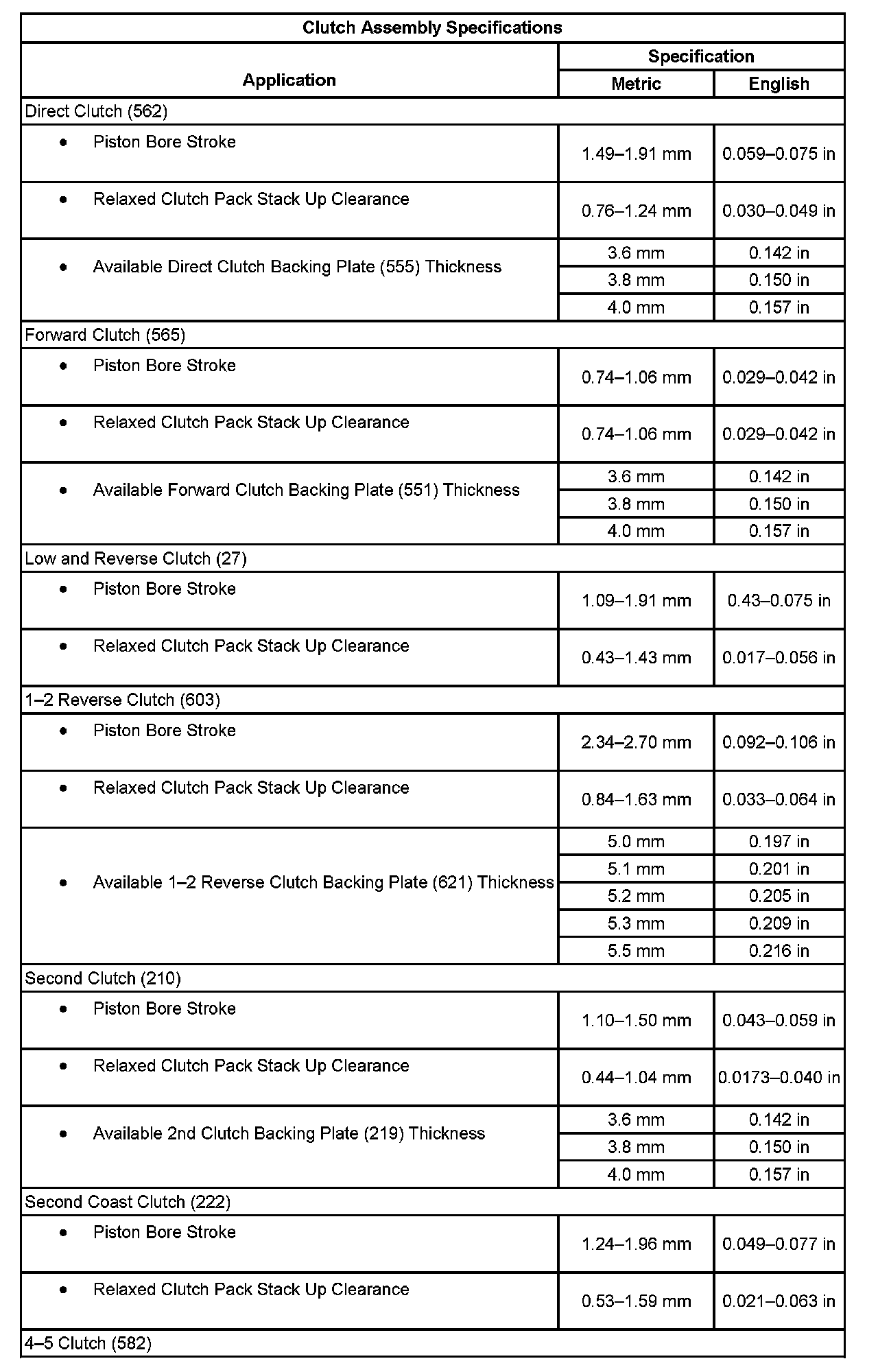 Clutch Assembly Specifications 2: