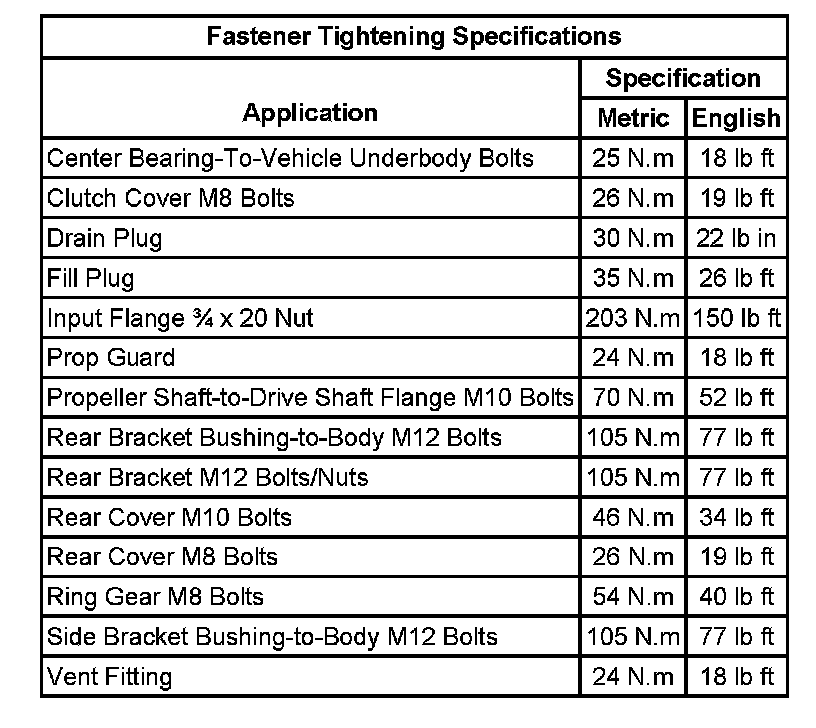 Fastener Tightening Specifications
