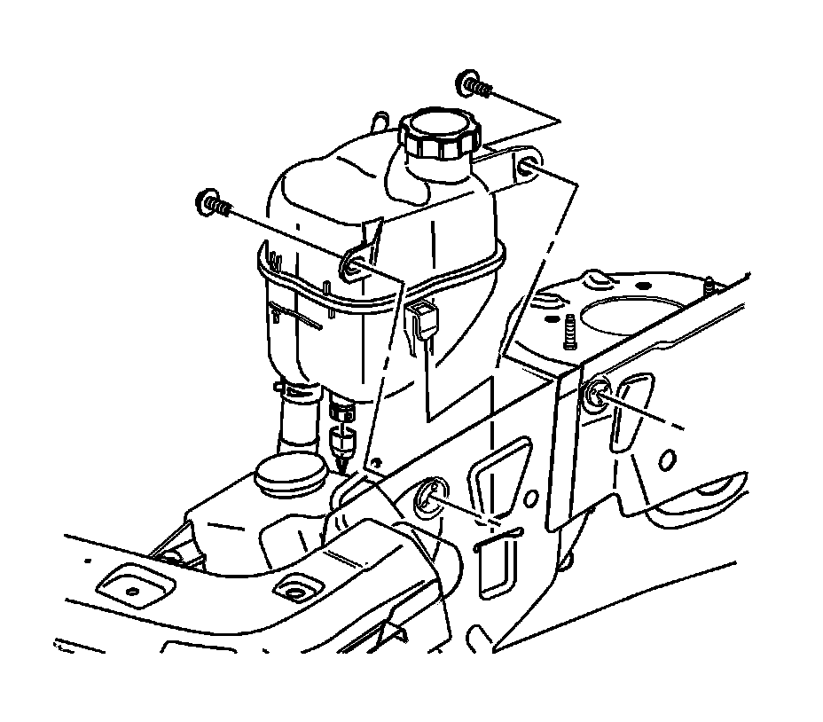 17. Remove the battery box bolt (2) from under the coolant surge tank.