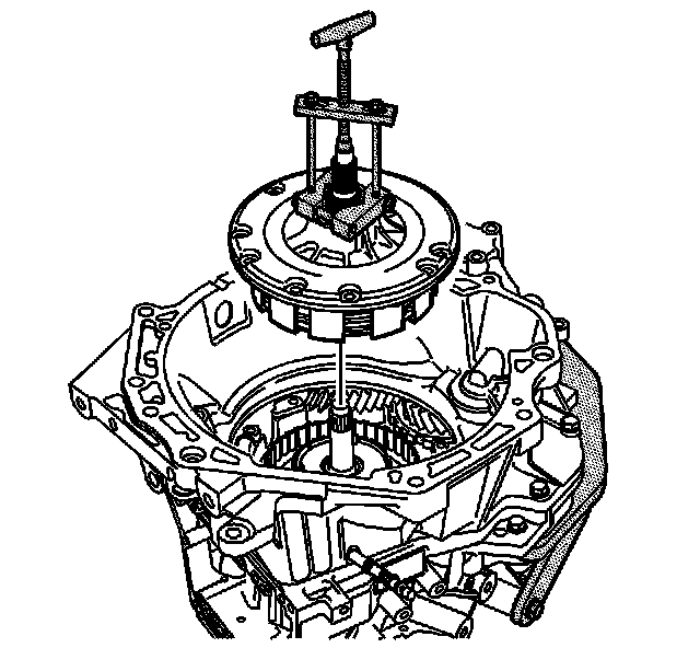 3. Using J 45053, remove the fluid pump assembly from the transmission case.
