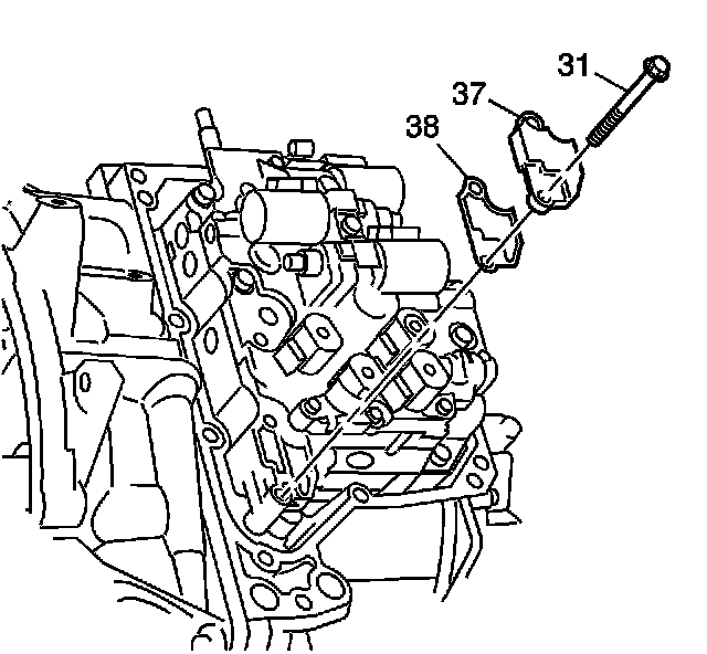 7. Install a new control valve body fluid passage cover gasket (38).