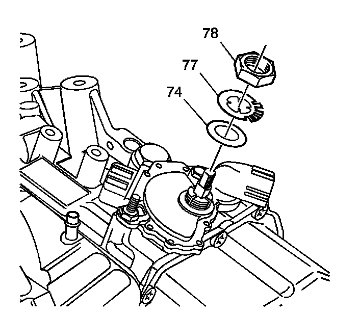 3. Install the park/neutral position switch flat washer (74), lock tab washer (77), and nut (78).