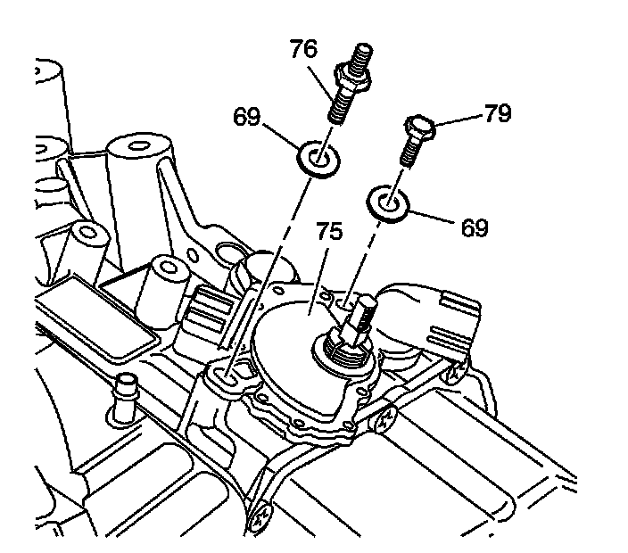2. Install the park/neutral position switch stud (76), bolt (79), and flat washers (69) and hand tighten until tight enough to hold the park/neutral position switch in place, but still loose enough to allow adjustment by hand.