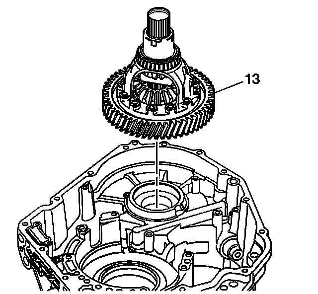 2. Install the front differential assembly (13) into the empty transmission case.