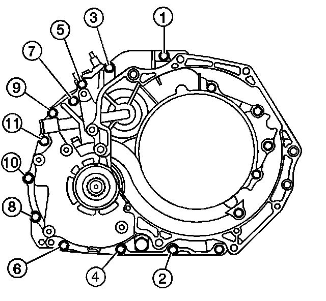 5. Tighten the torque converter housing bolts in sequence.