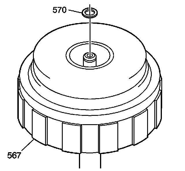 30. Install the new input shaft O-ring seal (570) into the groove of the forward and direct clutch housing assembly - with input shaft (567).
