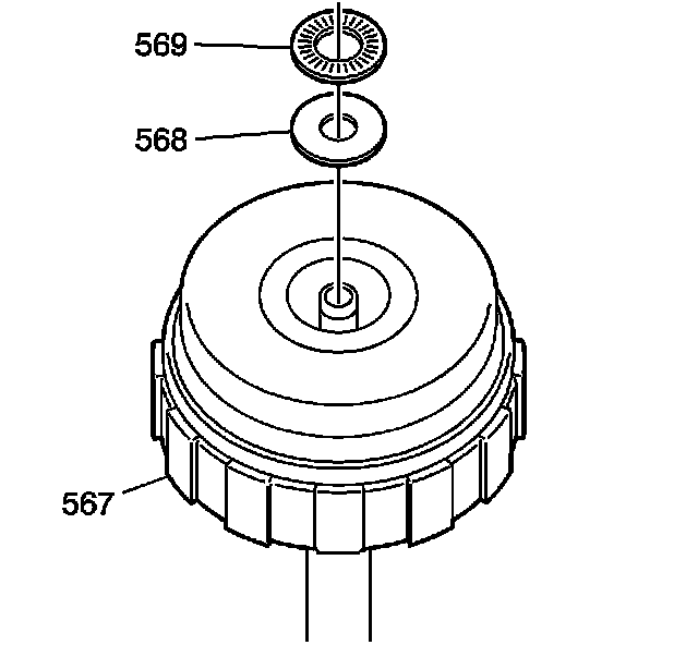 28. Install the forward clutch housing thrust bearing race (568) 0.81 mm (0.032 inch) thickness and the forward clutch housing thrust bearing (569).