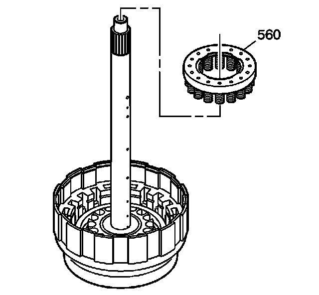19. Install the direct clutch spring assembly (560) onto the direct clutch piston, indexing the springs into the holes in the direct clutch piston (562).