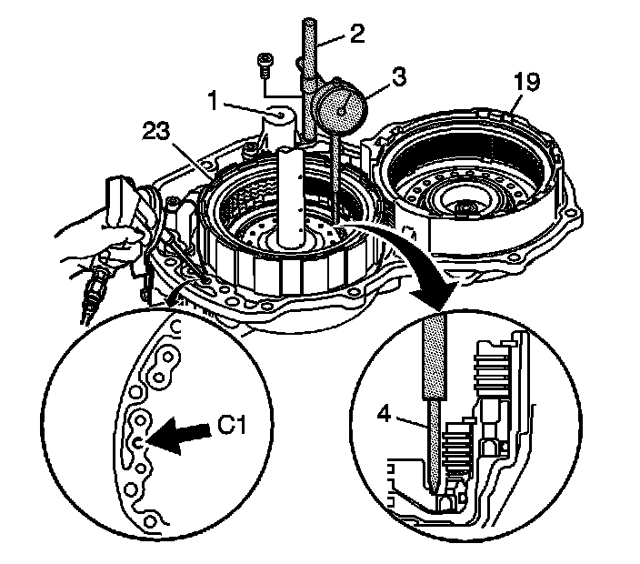 7. Apply compressed air to the C1 fluid passage in the case and measure the forward clutch piston stroke.