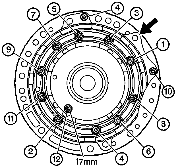 11. Tighten the fluid pump cover bolts in sequence.