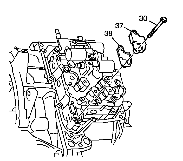 2. Remove the 2 control valve body bolts/screws (30), control valve body fluid passage cover (37) and gasket (38).