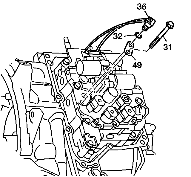 7. Install the 2 control valve body bolts (31).