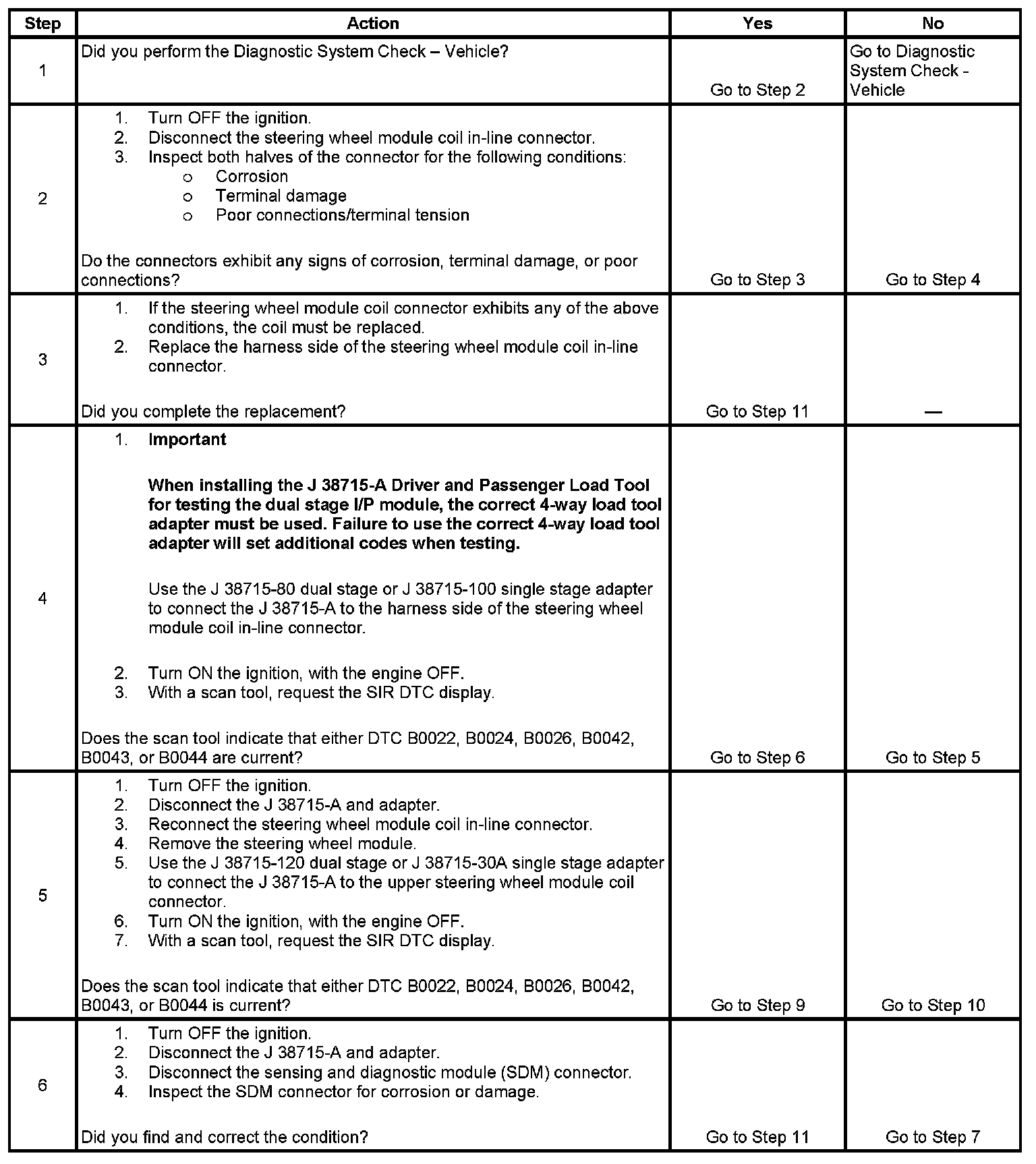 - DTC B0022 - stage 1 or B0042 - stage 2 will set when the steering wheel module deployment loop resistance is less than 1.3 ohms for 500 milliseconds.