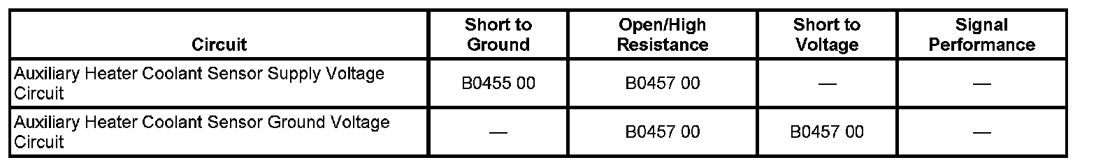 Auxiliary Heater Coolant Sensor Circuit Open