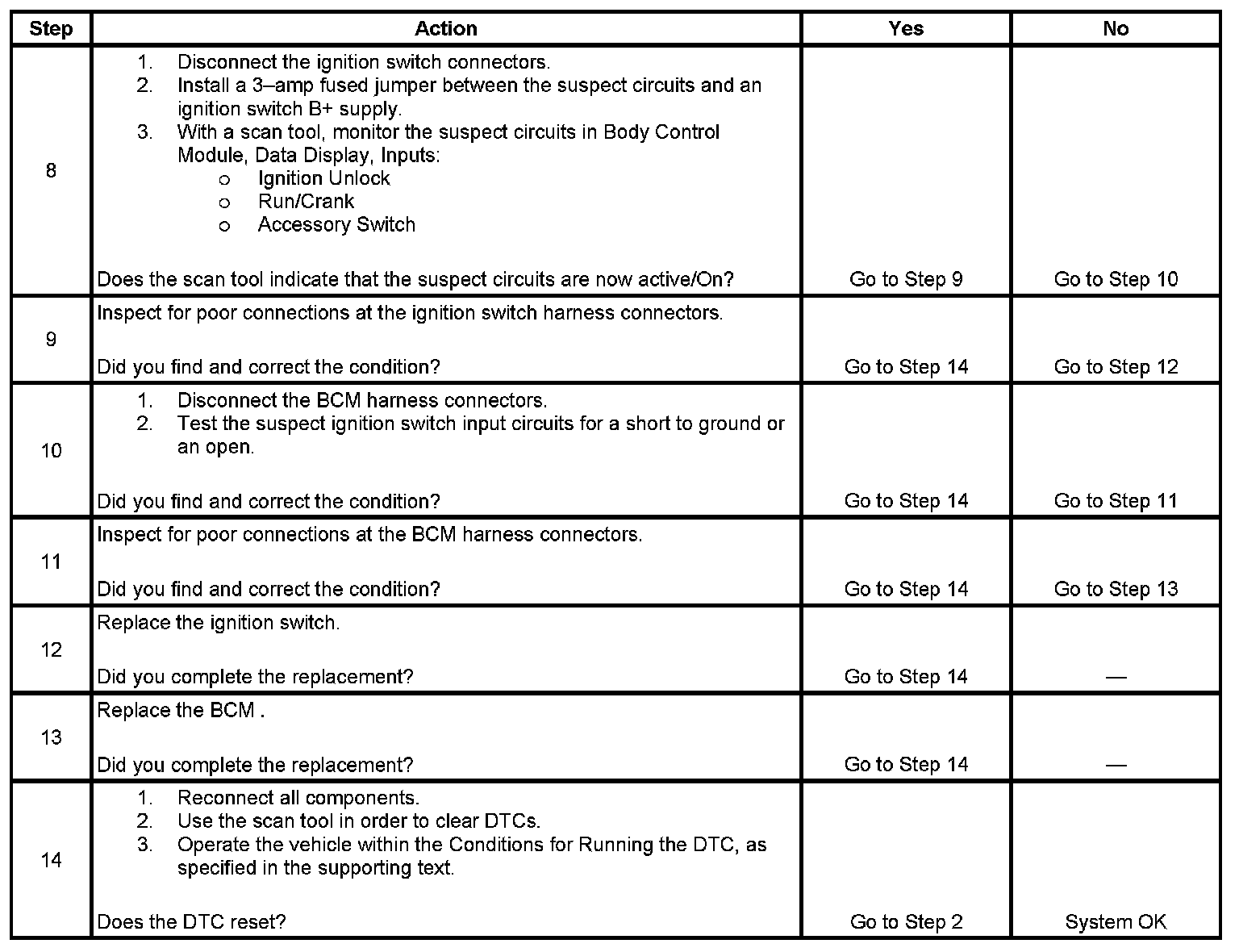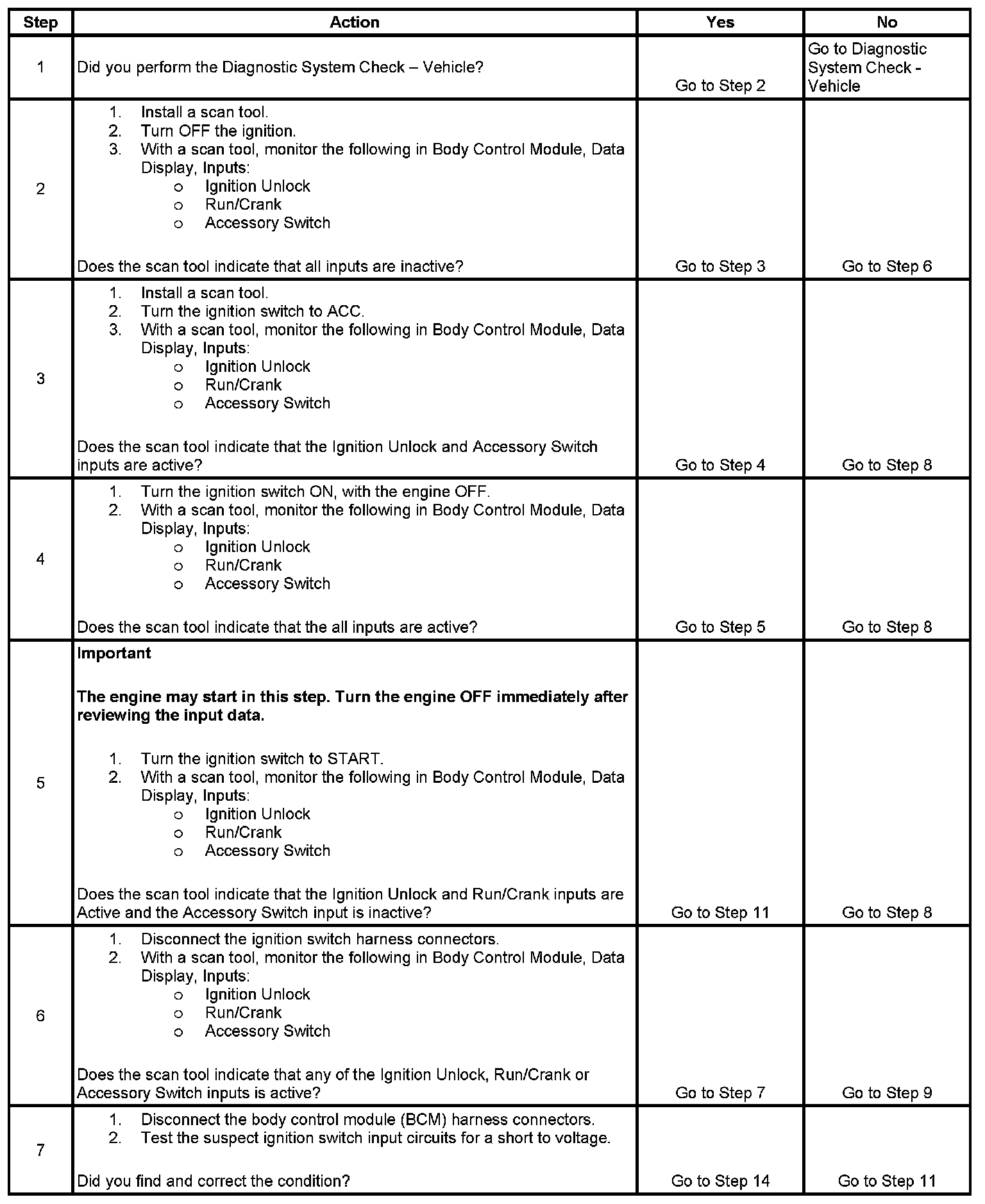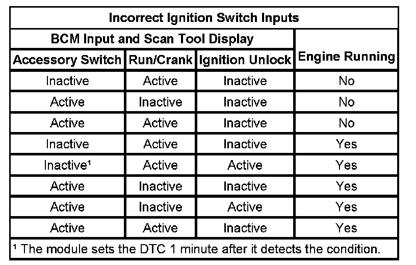 Incorrect Ignition Switch Inputs: