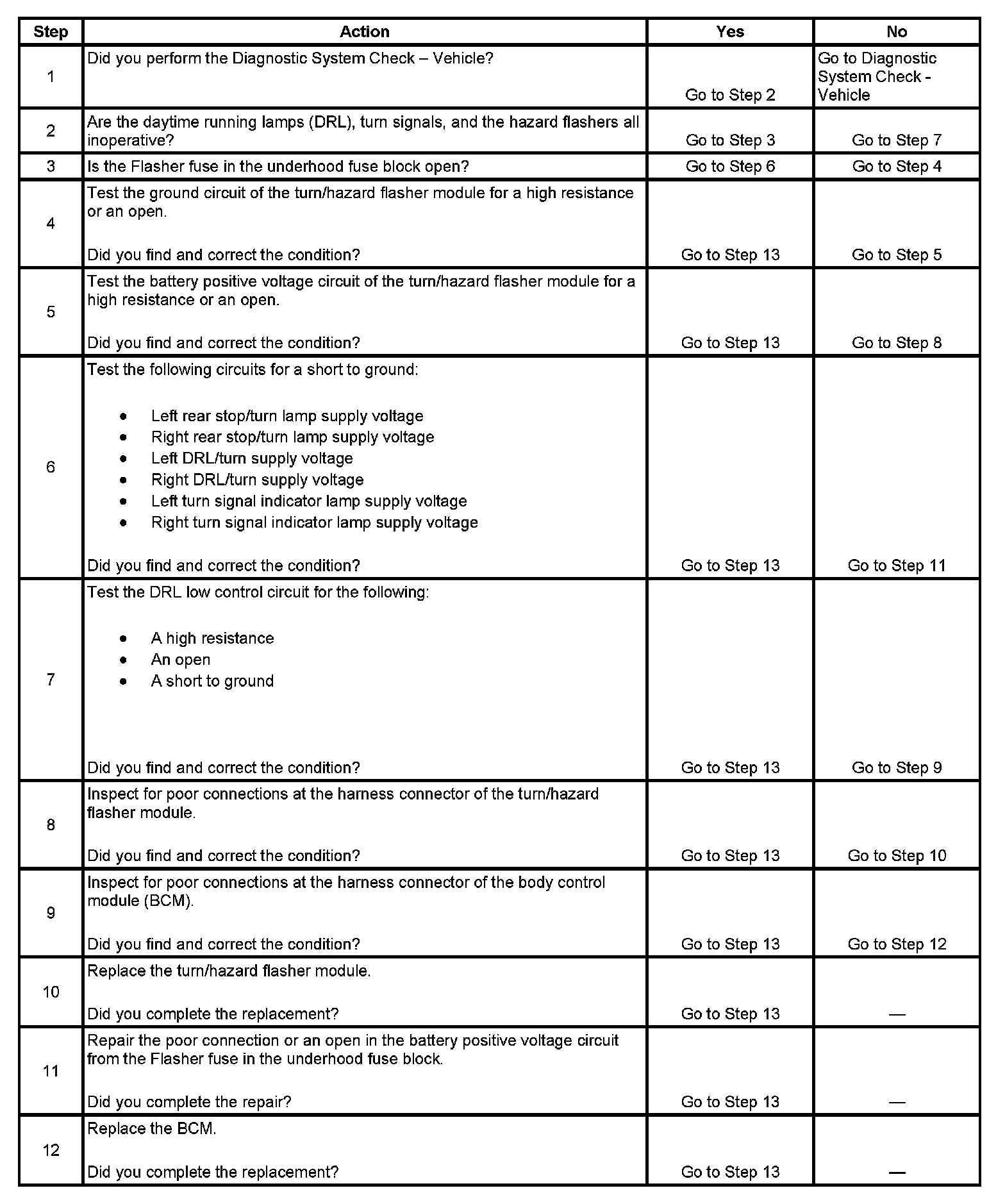 2. This step test determines if the problem exists in the DRL control/BCM or other circuitry.