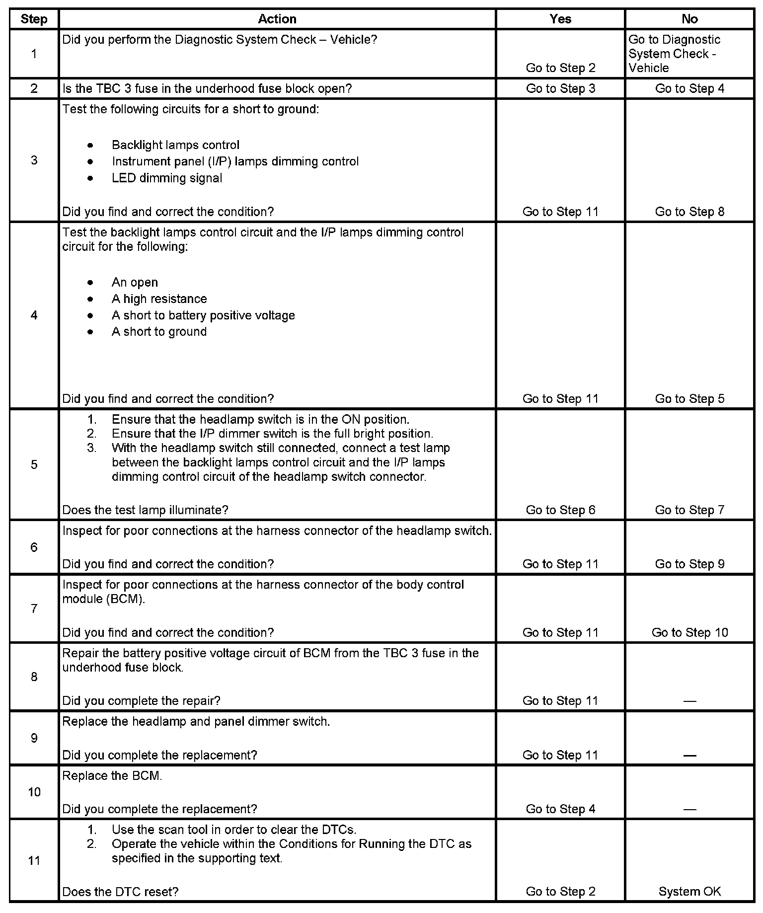 - The backlight lamps control circuit is open, shorted to ground, or shorted to battery positive voltage.
