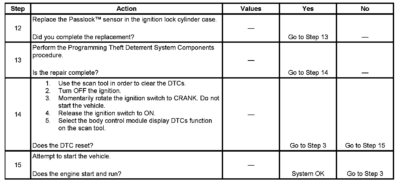 - Inspect the Passlock(TM) sensor harness for an intermittent or a short to battery.