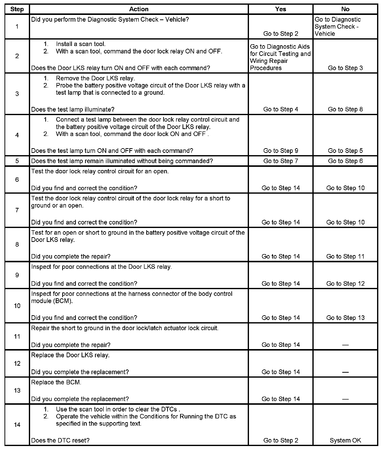 5. This step tests if ground is constantly being applied to the Door LKS Relay.