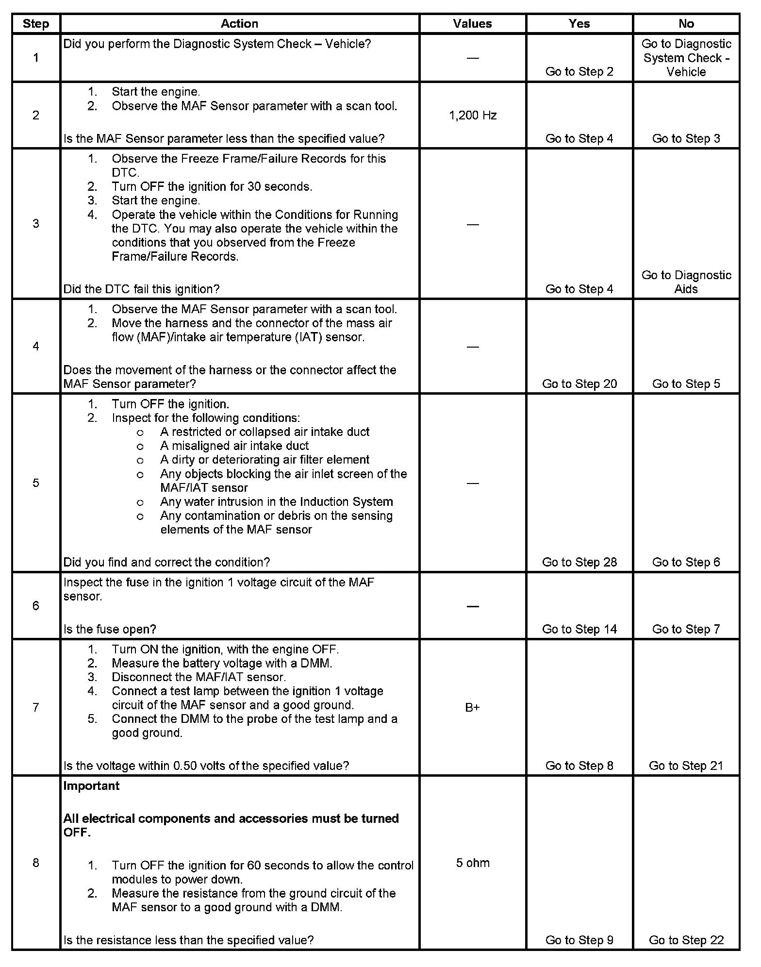 - A high resistance of 15 ohms or more on the ground circuit of the MAF sensor may cause this DTC to set. A high resistance may cause a driveability concern before this DTC sets.