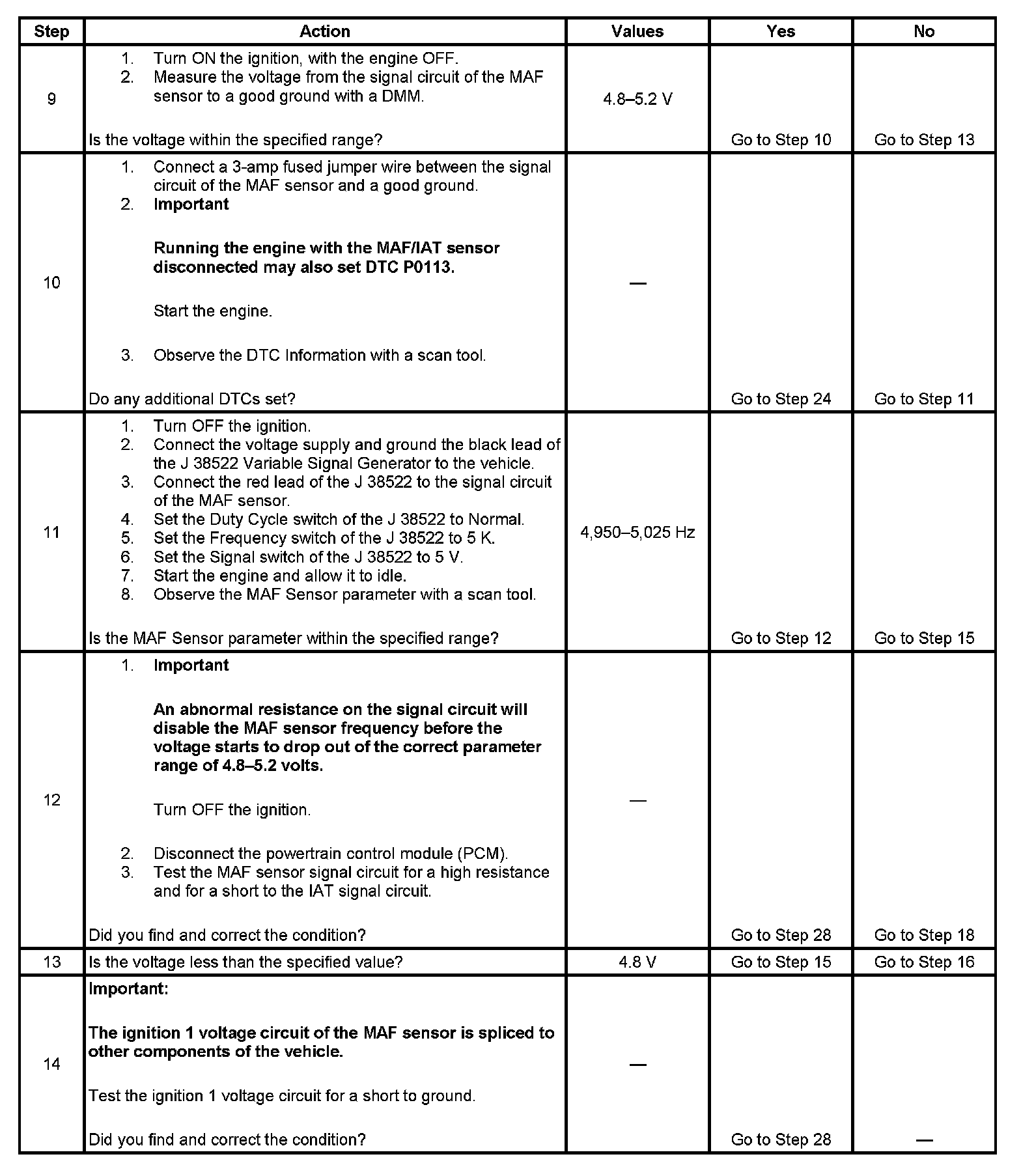 11. This step will determine if the PCM is able to process the frequency signal that it receives from the MAF sensor.