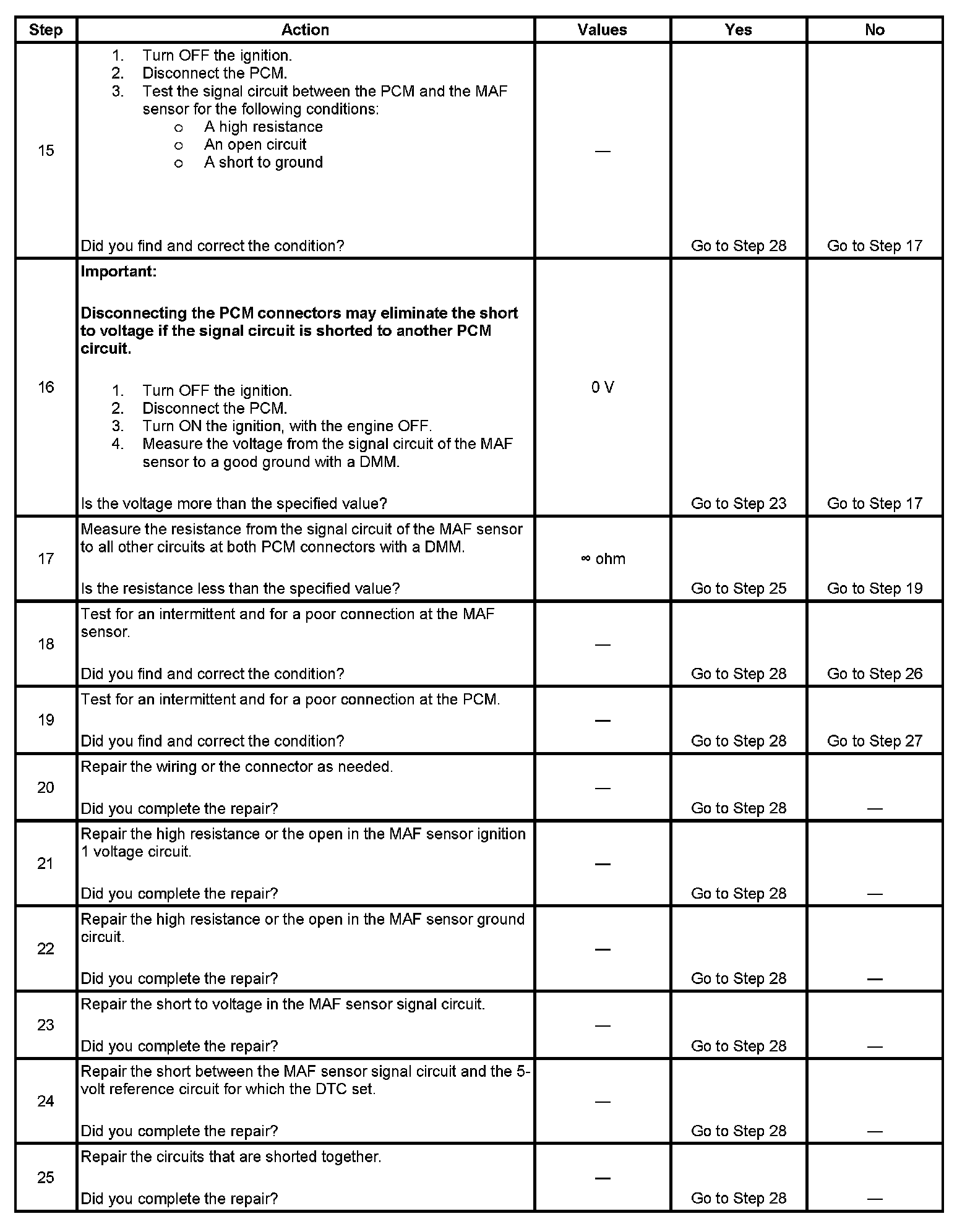 17. This step verifies that the signal circuit is not shorted to any other PCM circuit.