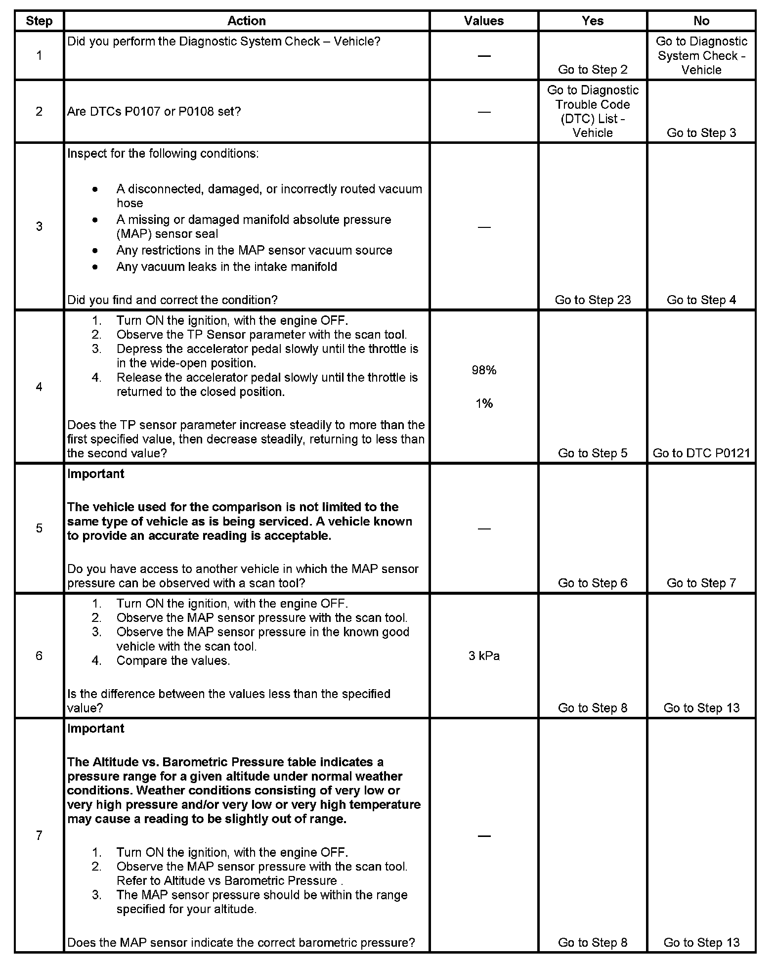 6. This step tests the MAP sensors ability to correctly indicate barometric pressure.