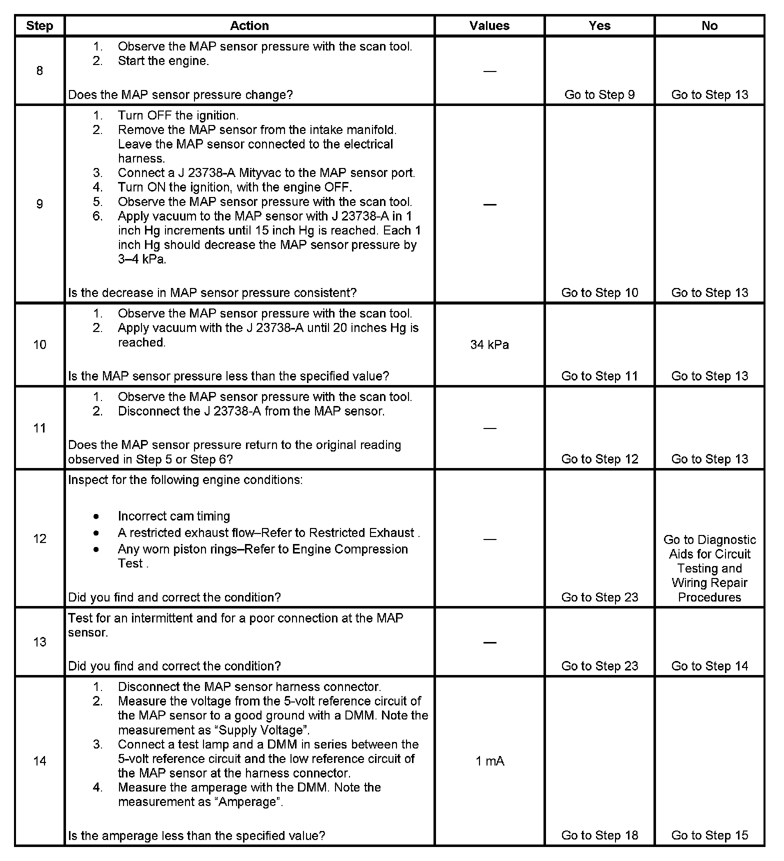 10. This step tests for a proper MAP sensor pressure with an applied vacuum.