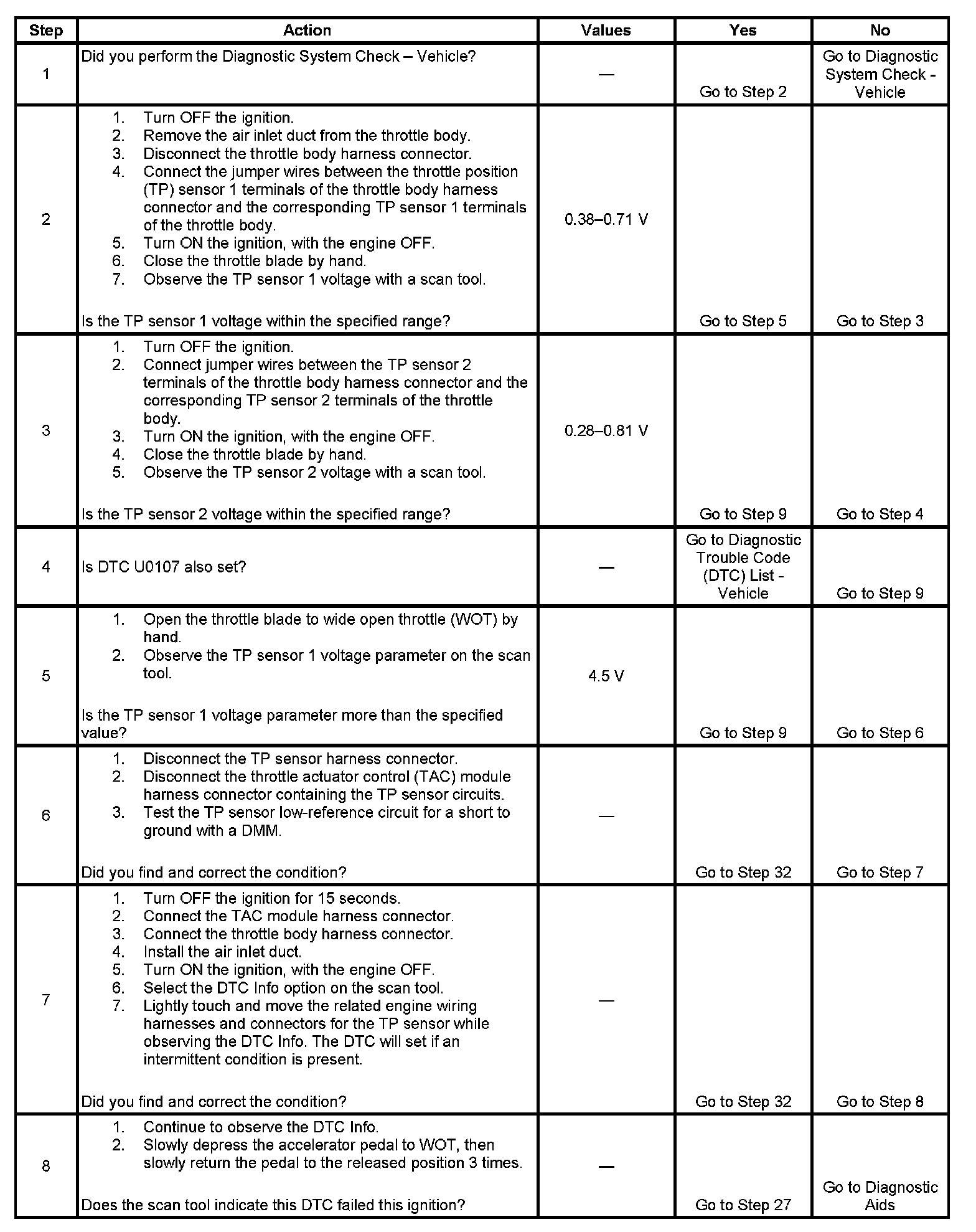 If the PCM detects one or more of the TP sensor 1 tests are out of range, DTC P0120 sets.