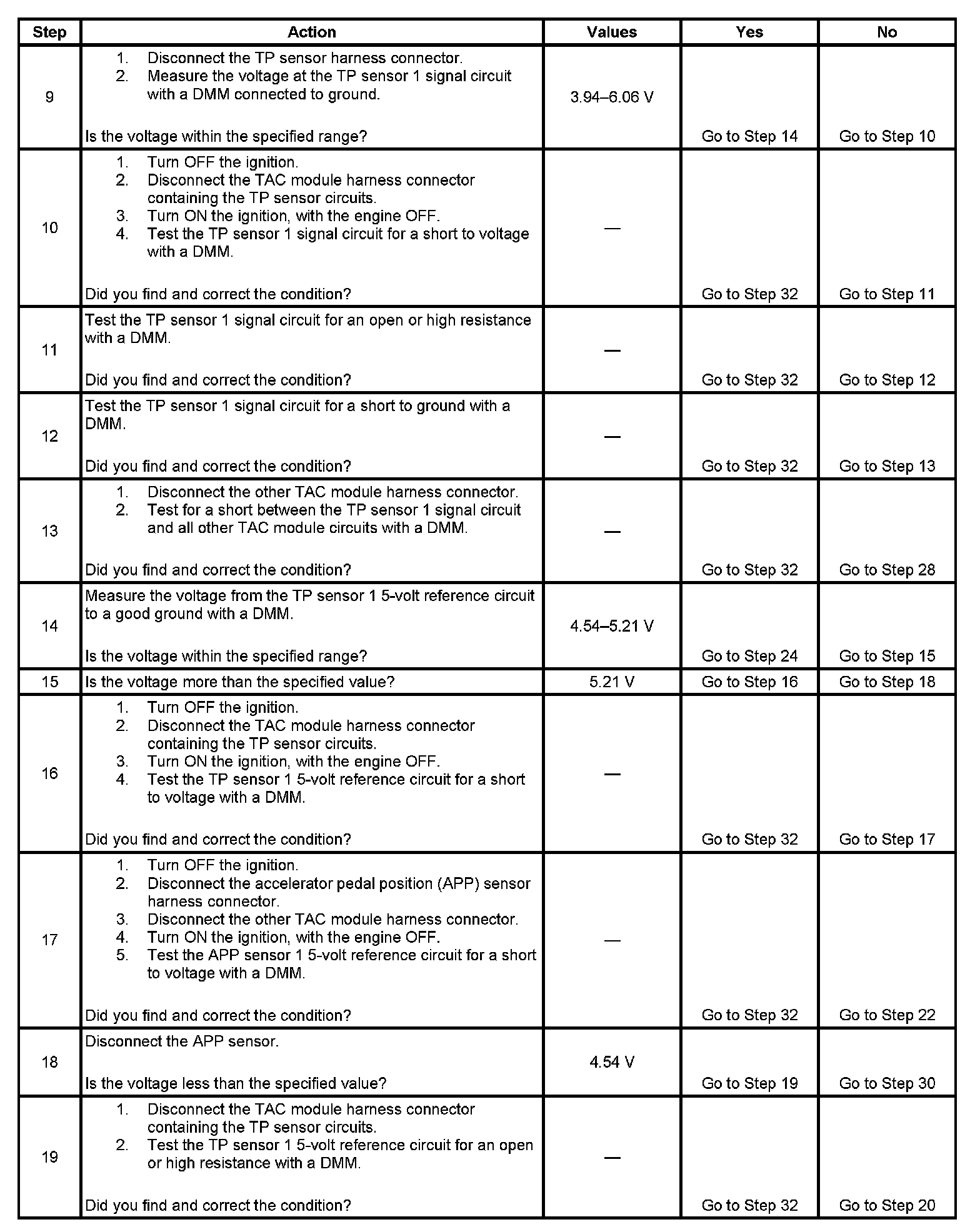 - The TP sensor 1 minimum throttle blade position is less than 0.38 volts or more than 0.71 volts for less than 1 second. OR