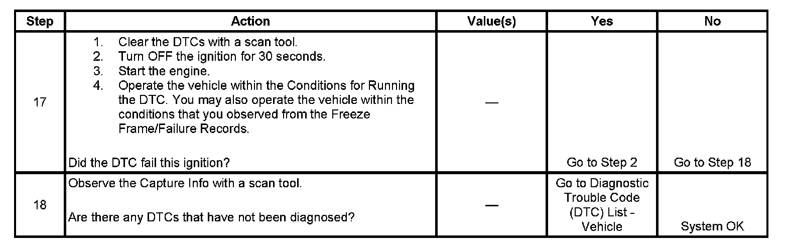 - A current DTC, Last Test Failed, clears when the diagnostic runs and passes.