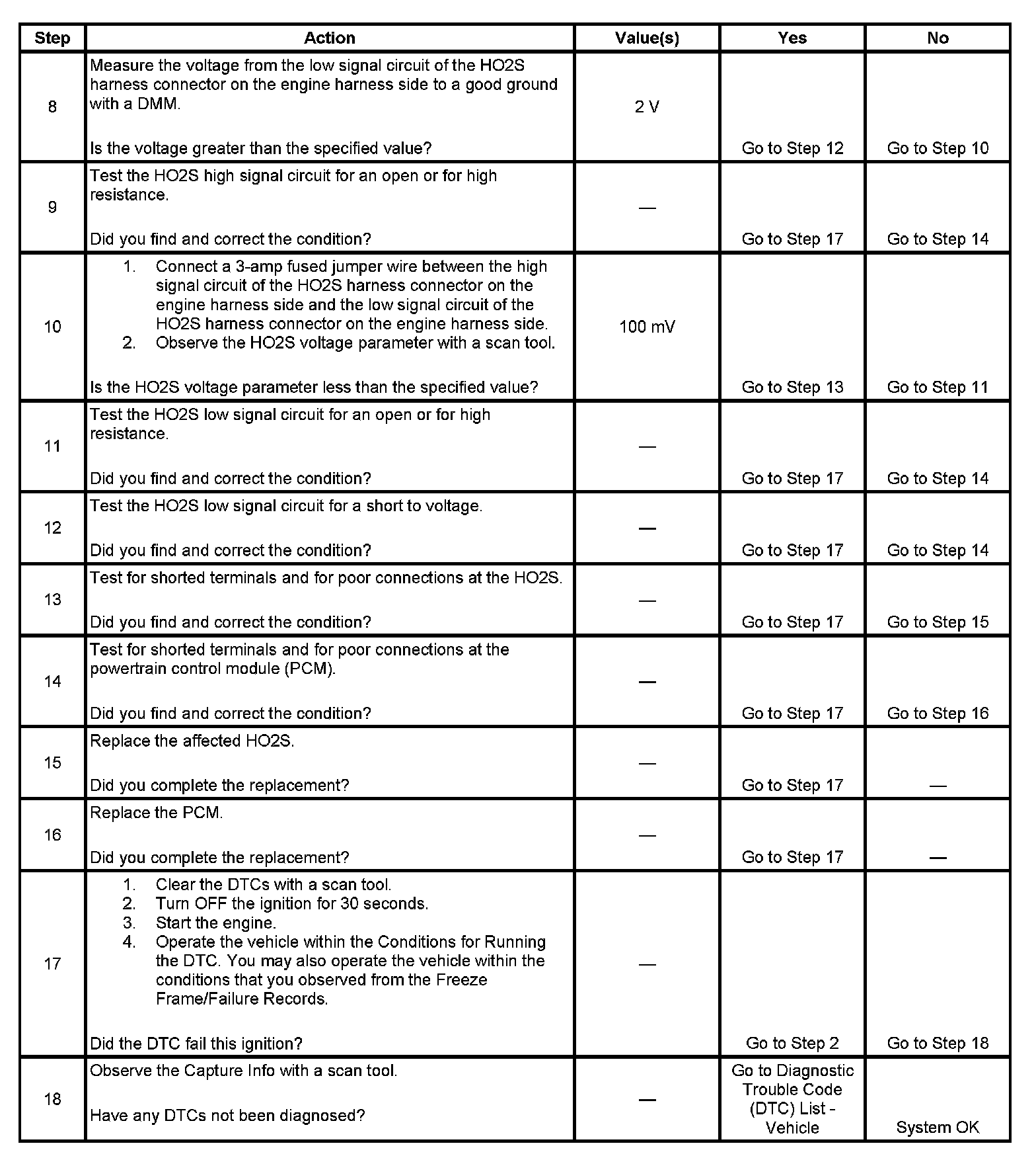 - The PCM detects that the affected HO2S voltage parameter is between 410-490 mV for 150 seconds.
