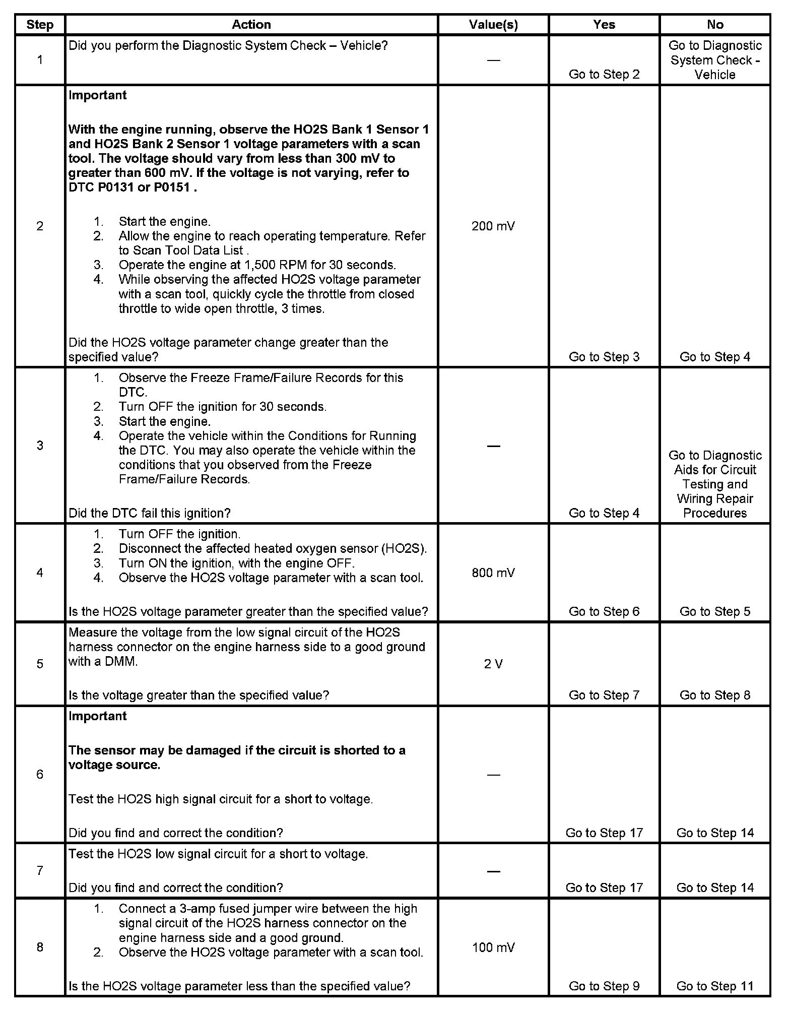 2. If the voltage does not change more that the specified value, the condition is present.