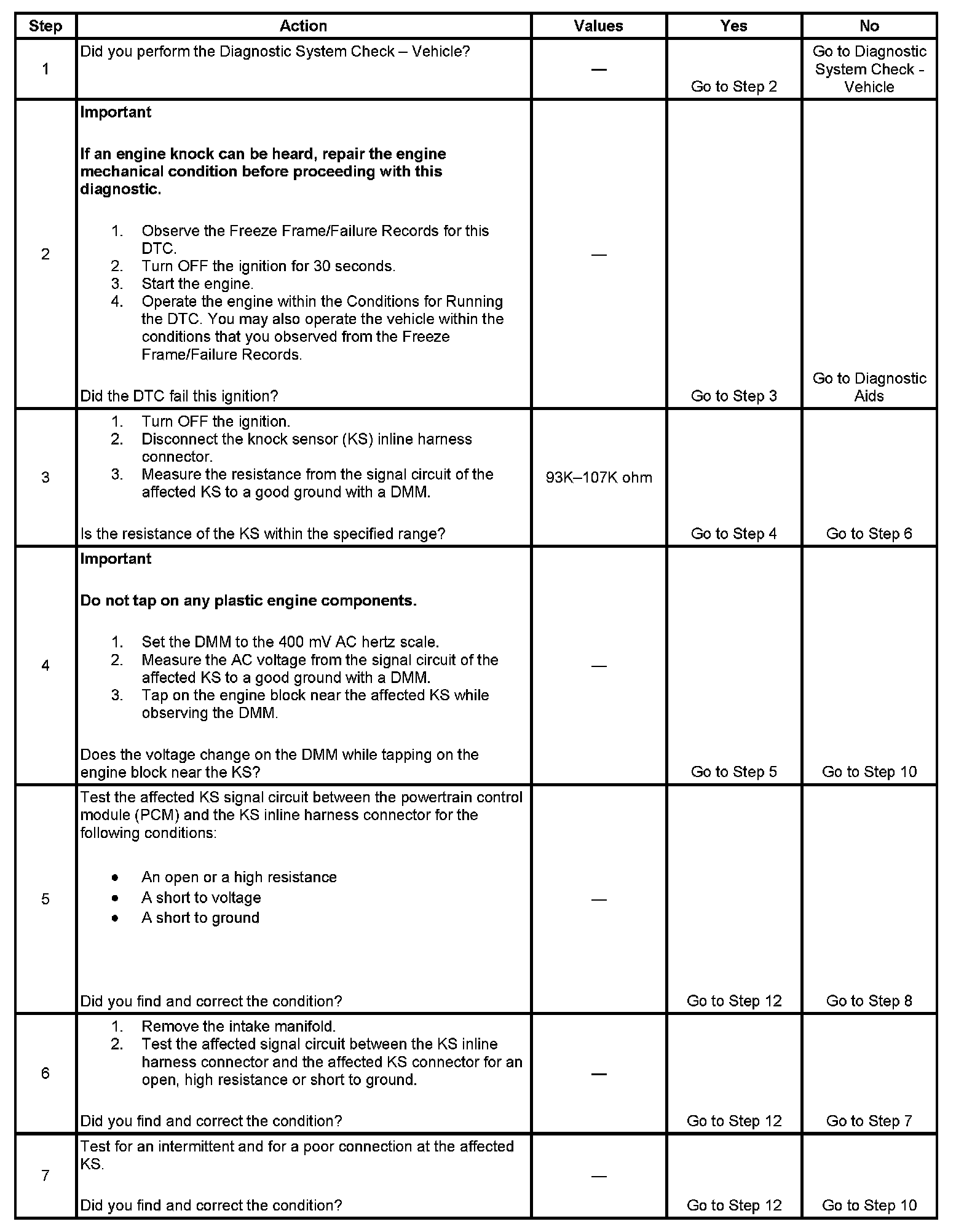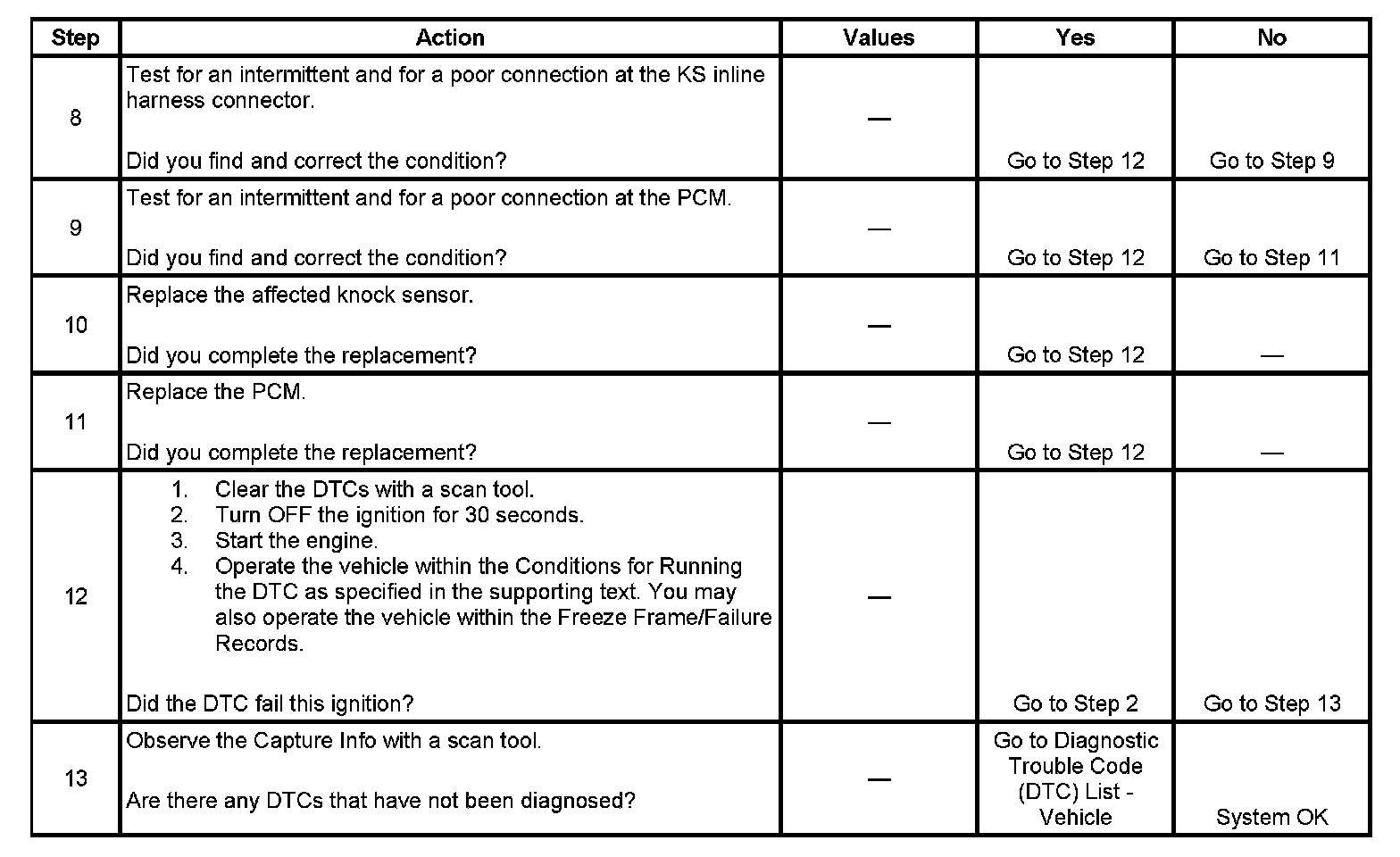 - Inspect the KS for proper installation. A knock sensor that is loose or over torqued may cause the DTC to set.
