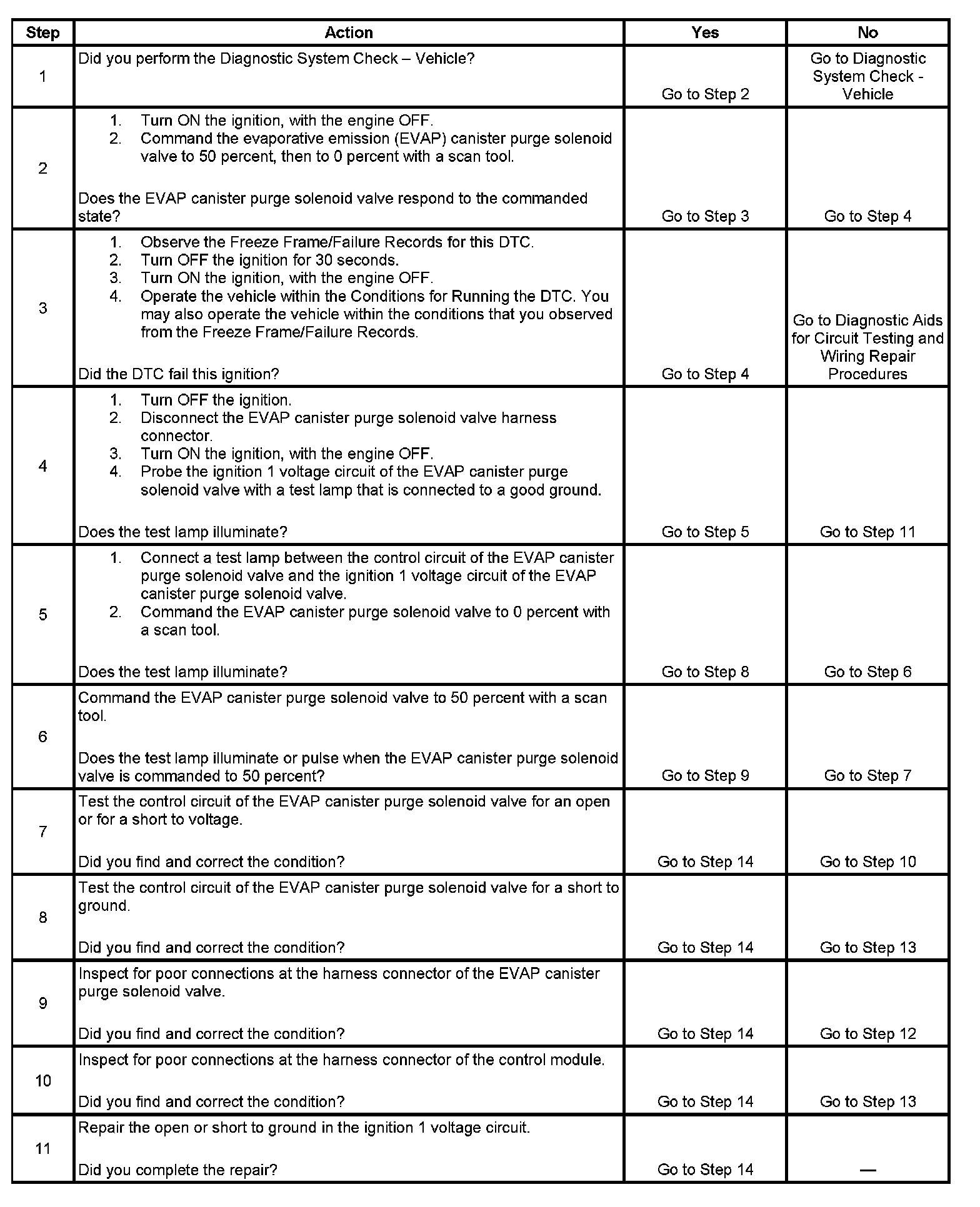 6. This step tests if a ground is constantly being applied to the EVAP canister purge solenoid valve.