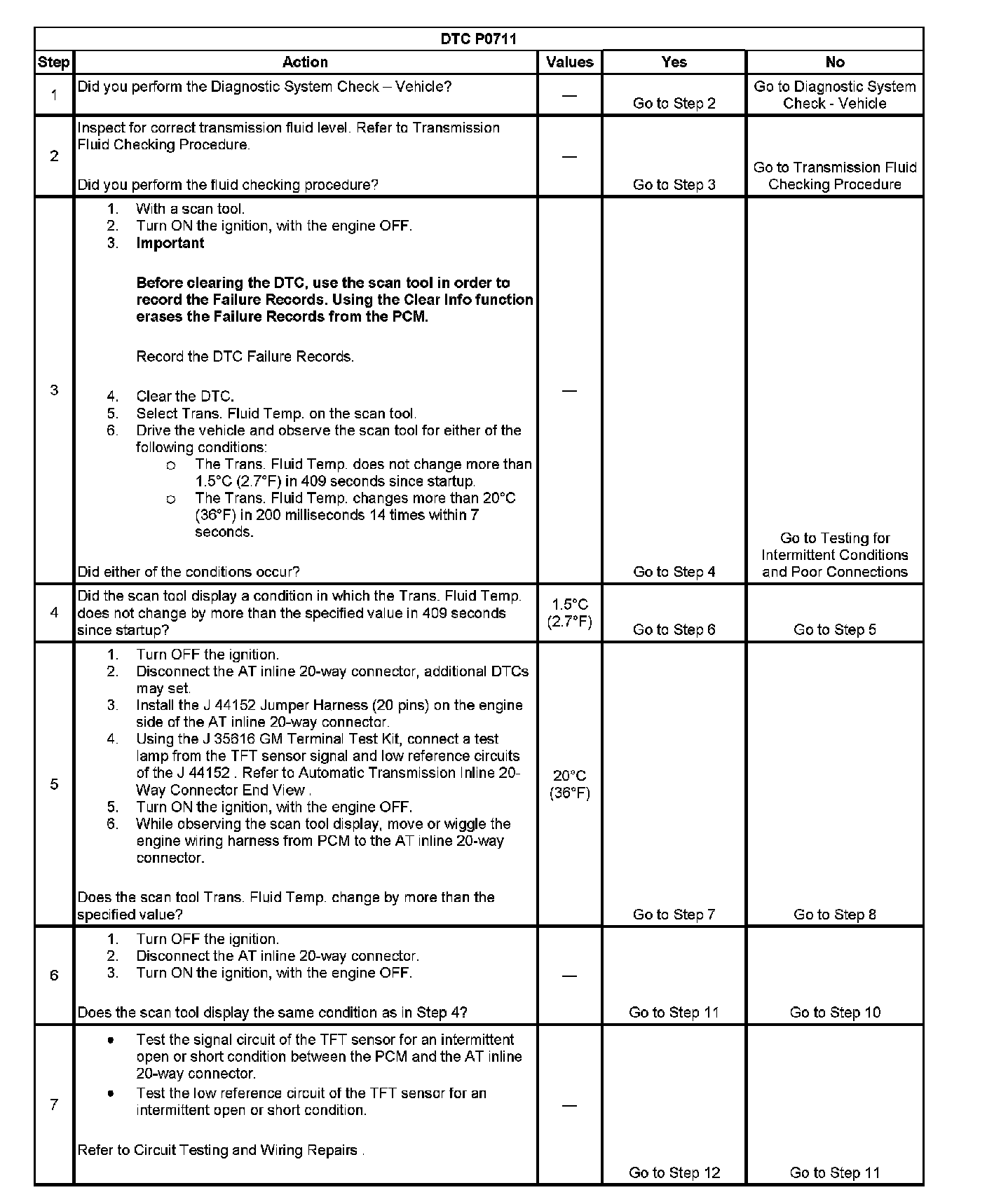 ^ A transmission temperature which remains constant for a period of time in which a measurable amount of change is expected DTC P0711 is a type C DTC.