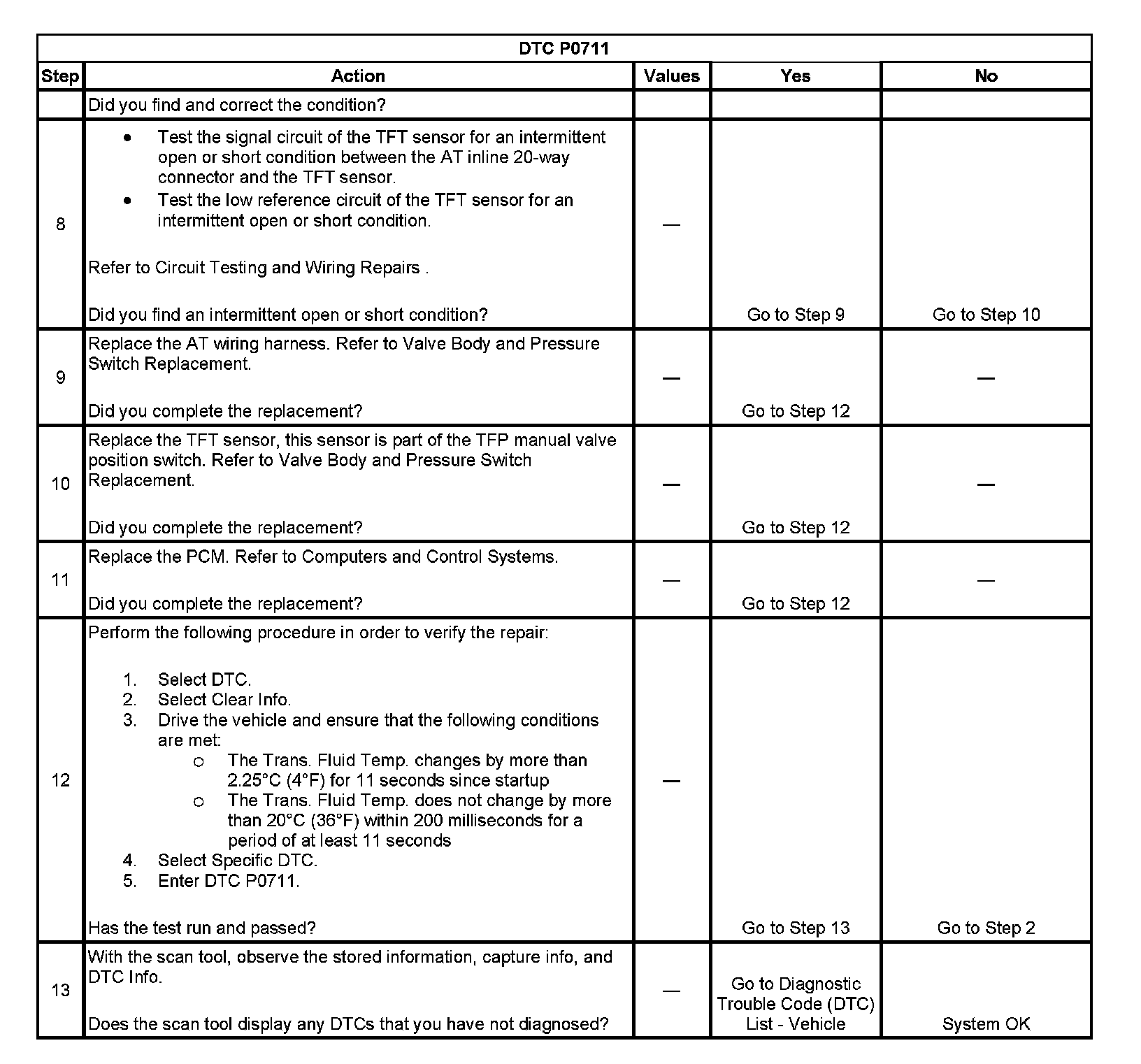 DTC P0711 Transmission Fluid Temperature (TFT) Sensor Performance