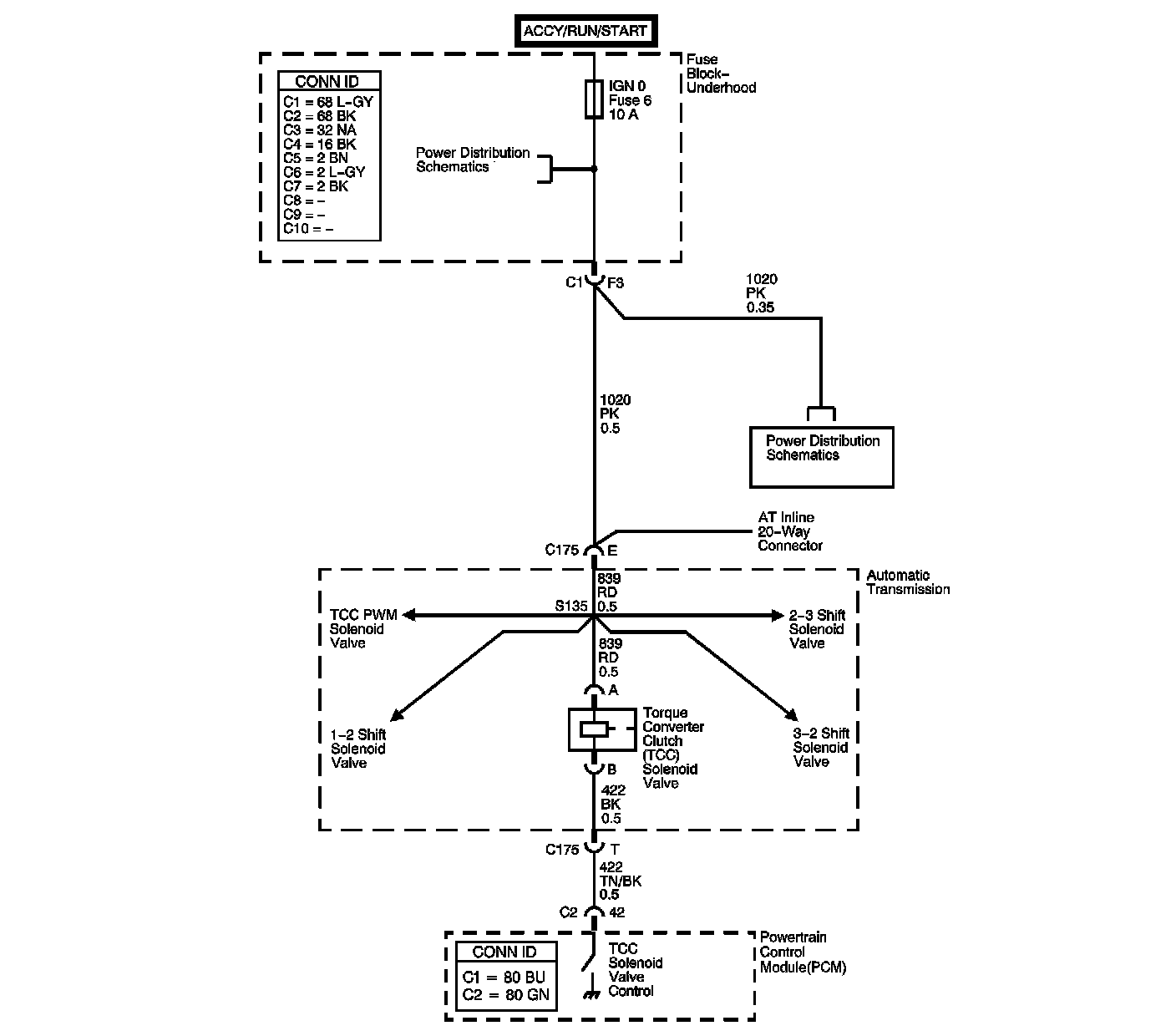 The torque converter clutch (TCC) solenoid valve is an electrical device that is used with the torque converter clutch pulse width modulation (TCC PWM) solenoid valve in order to control TCC apply and release. The TCC solenoid valve attaches to the transmission case assembly extending into the pump cover. The TCC solenoid valve receives ignition voltage through the ignition 0 voltage circuit. The powertrain control module (PCM) controls the solenoid by providing the ground path on the TCC solenoid valve control circuit. The PCM monitors the throttle position sensor voltage, the vehicle speed, and other inputs in order to determine when to energize the TCC solenoid valve.