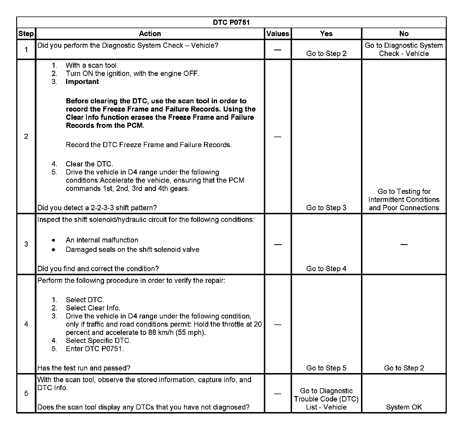 ^ The PCM stores DTC P0751 in PCM history.